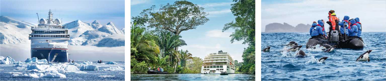 Die Expeditionsschiffe der HANSEATIC-Flotte (spirit, nature, inspiration) steuern außergewöhnliche Ziele an – ob Arktis, Antarktis oder Südsee. Zodiac-Fahrten, Wissenschaft an Bord, Vorträge und echter Entdeckergeist gehören zum Standard.